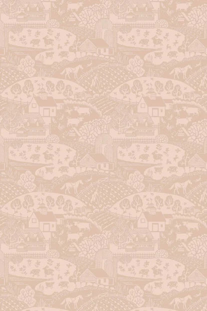 Our Gable papers are playful, pastoral and utterly charming. Depicting traditional village and farmyard scenes with clean, modern styling, its large scale statement pattern is studded with little details that spark the imagination, taking on added character as you look.